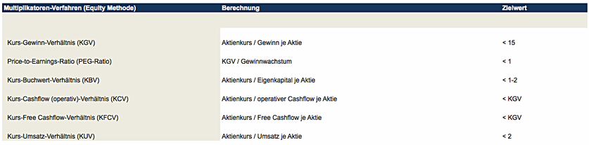 Multiplikatoren Verfahren Equity Methode Value Researchs Webseite