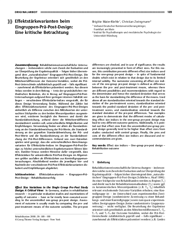 Pdf Effektstarkevarianten Beim Eingruppen Pra Post Design Eine