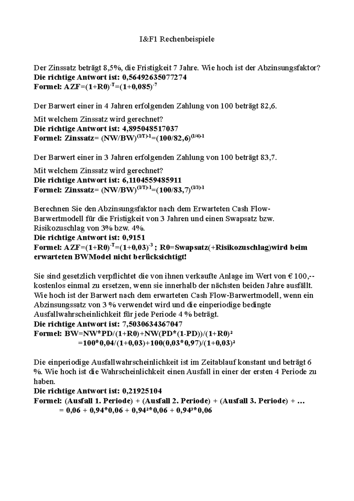 I F Rechenbeispiele Investition Und Finanzierung 1 330 224 Studocu