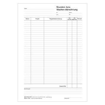 Hour Or Wochenabrechnung Din A4 2 No Carbon Required Ncr Book