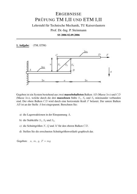 Pr Ufung Tm I Ii Und Etm I Ii Lehrstuhl Fur Technische Mechanik
