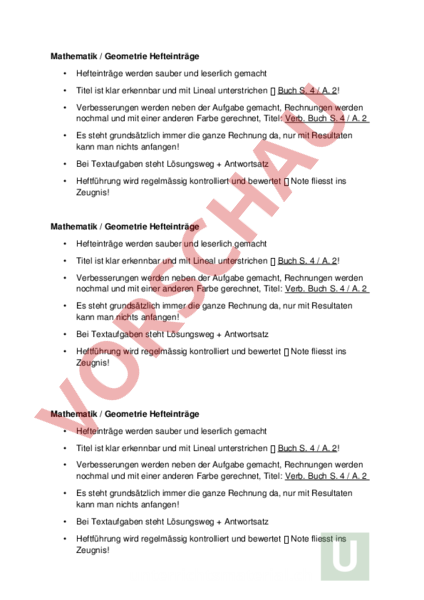 Arbeitsblatt Heftfuhrung Mathe Mathematik Gemischte Themen