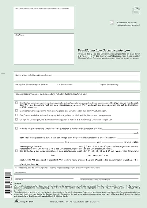 Spendenquittung Sachzuwendung A4 Sd Amazon Co Uk Office Products