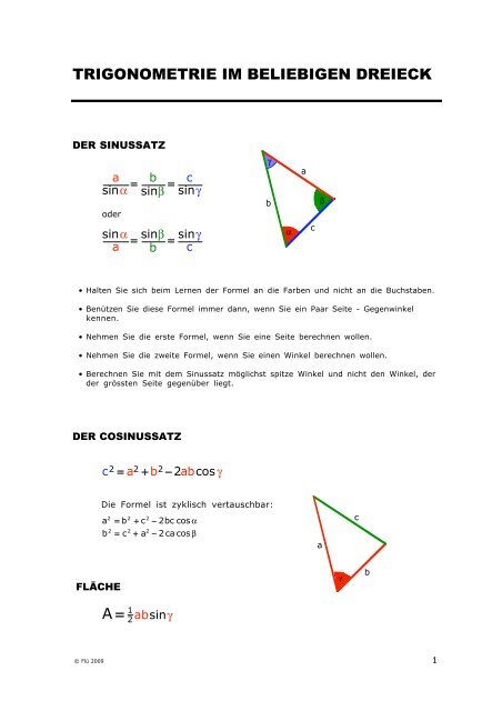 Trigonometrie Im Beliebigen Dreieck A 1