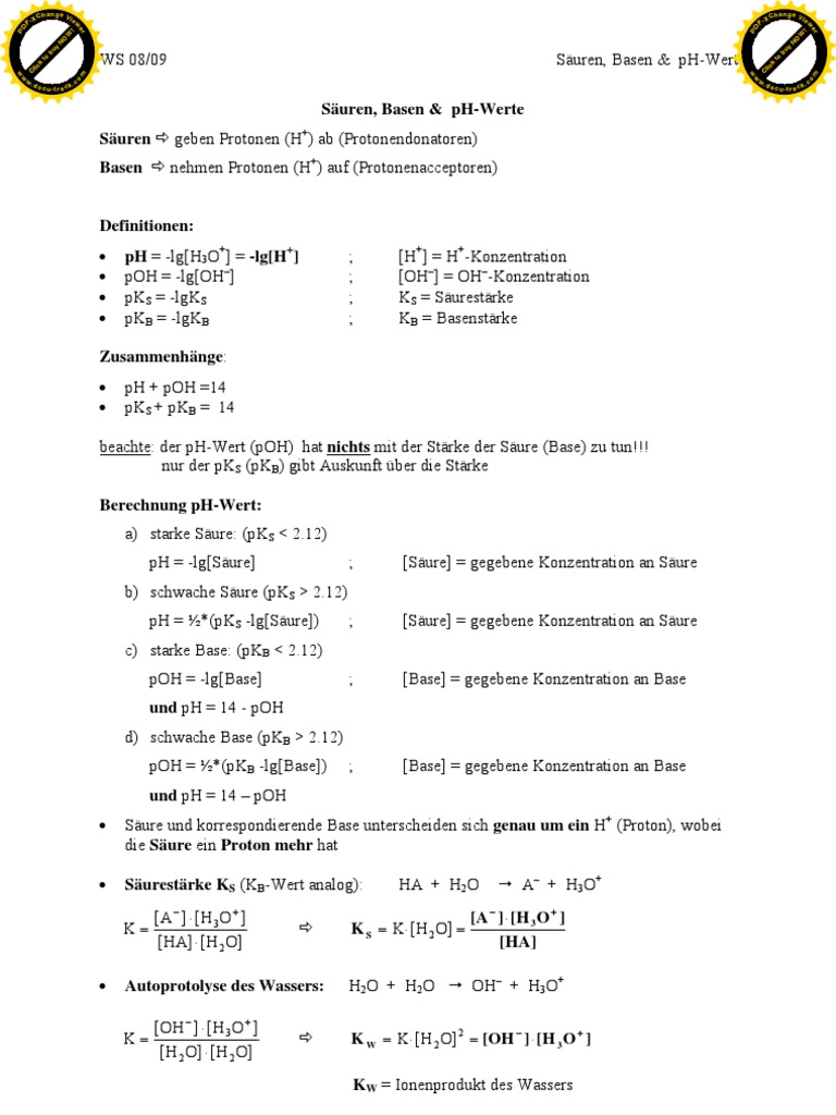Kann Man Mithilfe Der Formel Fur Den Ph Wert Der Mittelstarker