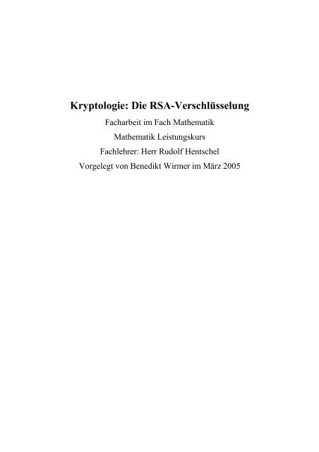 Kryptologie Die Rsa Verschlusselung