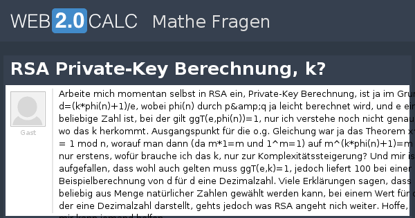 Frage Anzeigen Rsa Private Key Berechnung K