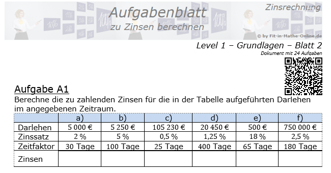 Zinsen Berechnen In Der Prozentrechnung Level 1 Grundlagen Blatt 2