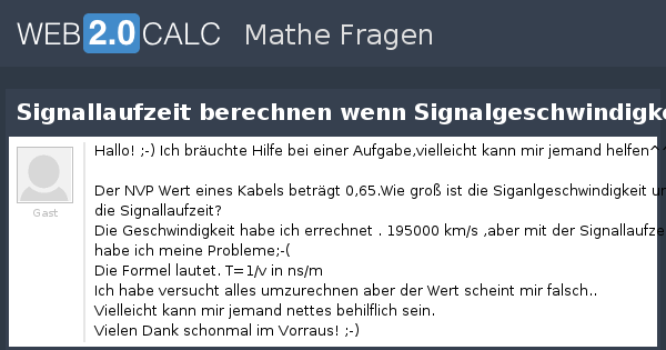Frage Anzeigen Signallaufzeit Berechnen Wenn