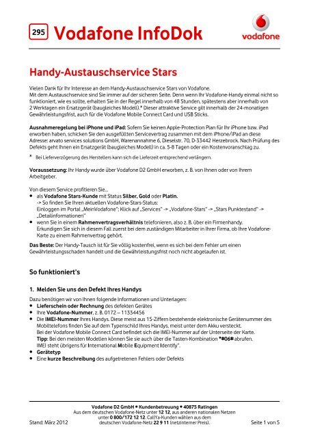 Infodok 295 Handy Austauschservice Stars