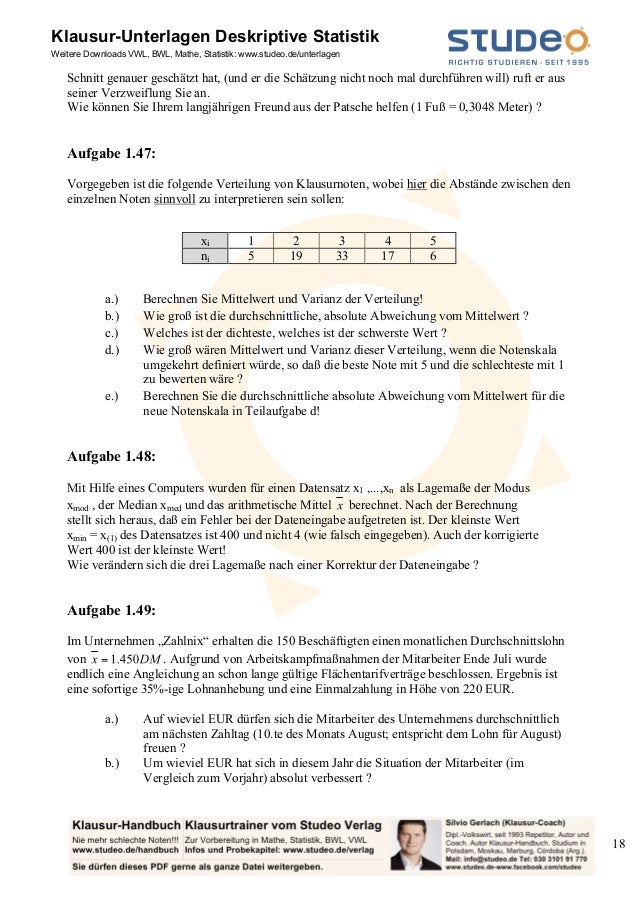 Studeo Aufgabensammlung Deskriptive Statistik Ein Merkmal