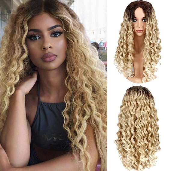 Tianwlio Perucken Damen Schwarzes Gold Langes Lockiges Haar