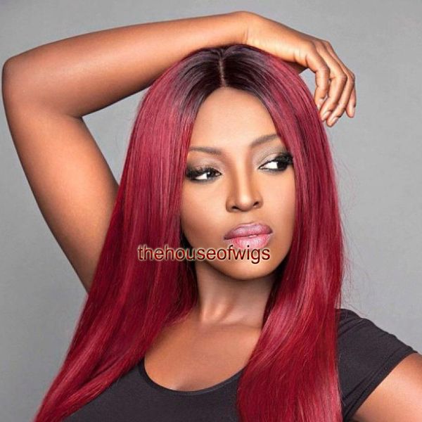 Grosshandel 1b Rot Glueless Volle Spitze Echthaar Perucken 130