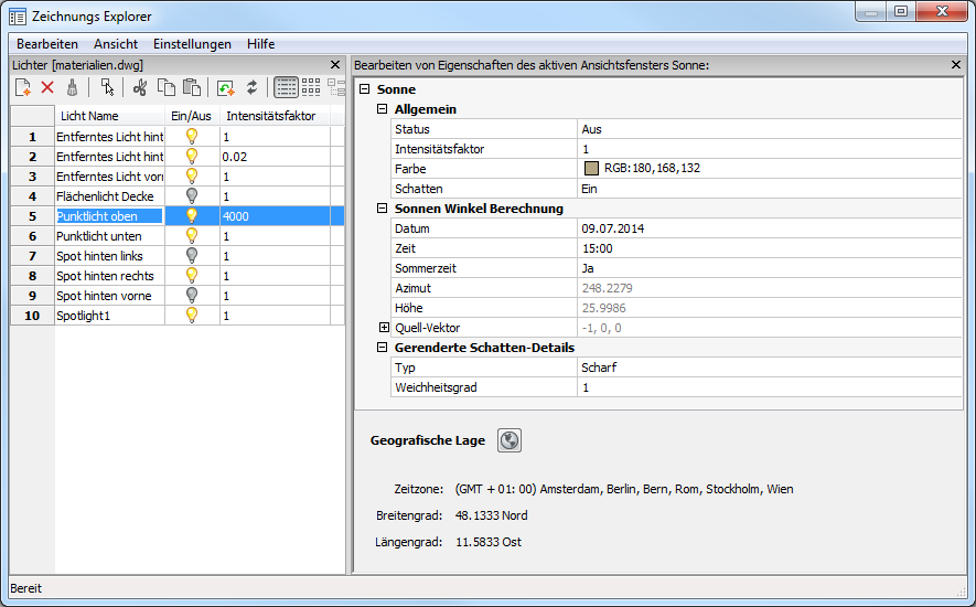 Sonneneigensch Sunproperties Bricscad Hilfe