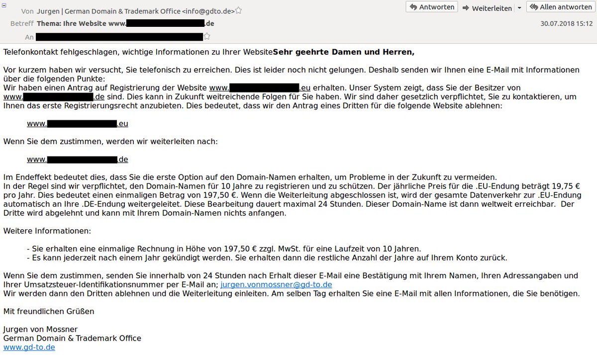Domainregistrierung Betrugsversuch Mit Gefalschter Rechnung