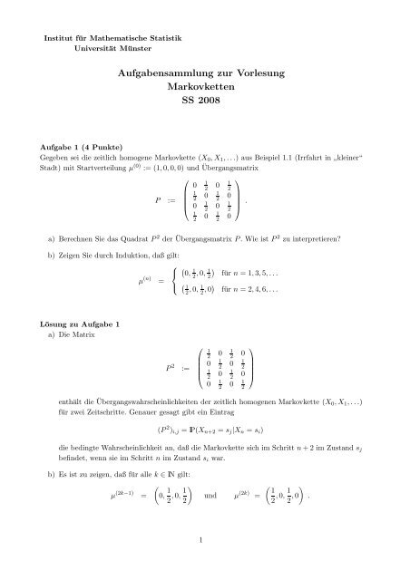 Aufgabensammlung Zur Vorlesung Markovketten Ss 2008