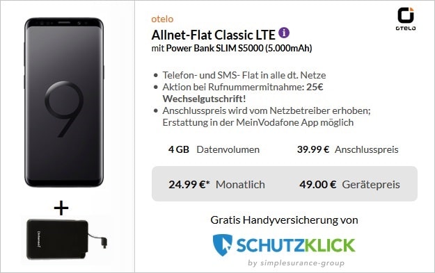 Galaxy S9 Otelo Allnet Flat Classic Lte 50 Fur Eff 7 82 Mtl