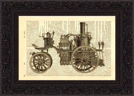 Antike Feuer Pumpe Druck Auf Upcycled Landschaft Worterbuch Etsy