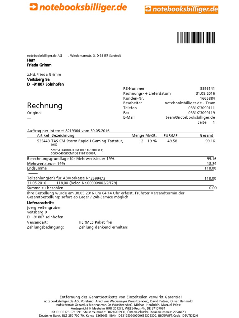 Pdf Rechnung M211190215988232 02 2019 Pdf R E C H N U N G Fur