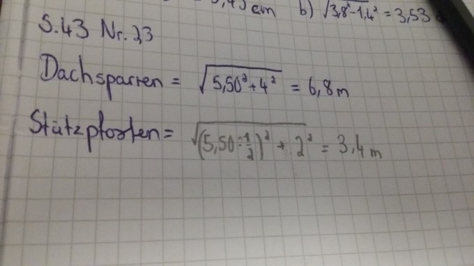 Dachsparren Und Stutzpfosten Berechnen Von Seitenlangen Mathelounge