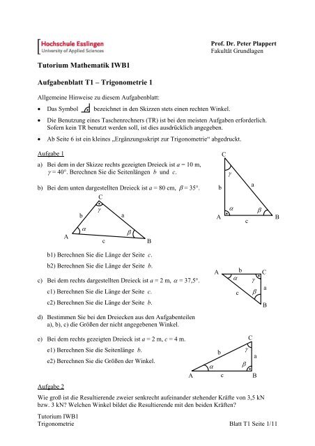 Tutorium Mathematik Iwb1 Aufgabenblatt T1 A A A Trigonometrie 1