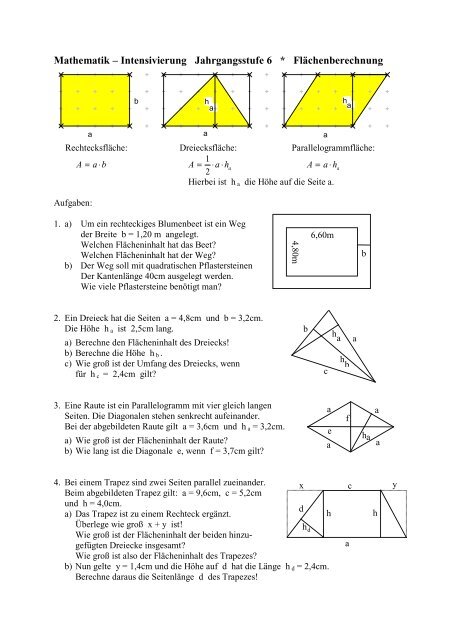 Mathematik Intensivierung Jahrgangsstufe 6 Flachenberechnung