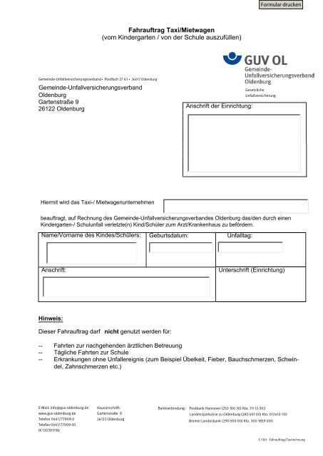 Fahrauftrag Taxi Mietwagen Gemeinde