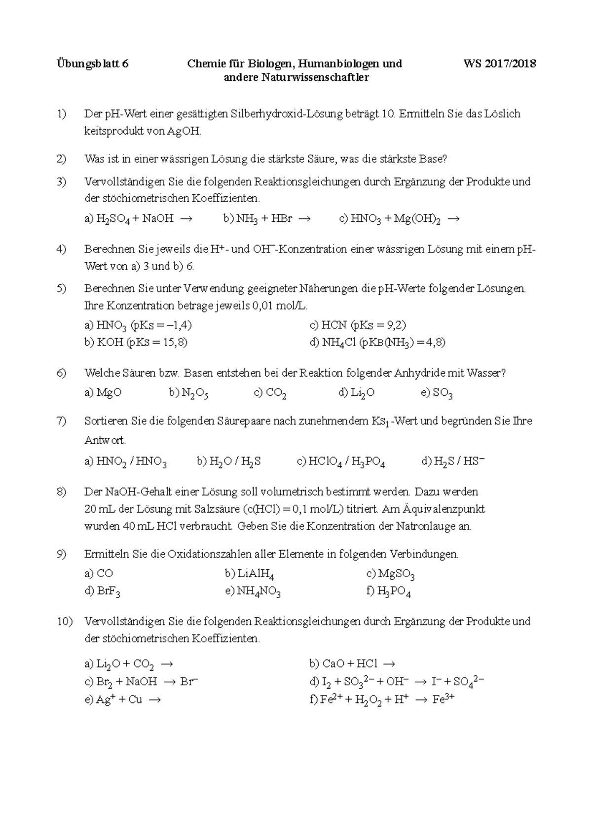 Uebung 6 Ubung Der Anorganischen Chemie 6 Uni Marburg Studocu