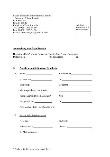 Anmeldeformular Fa R Grundschule Und Sekundarstufe Deutsche