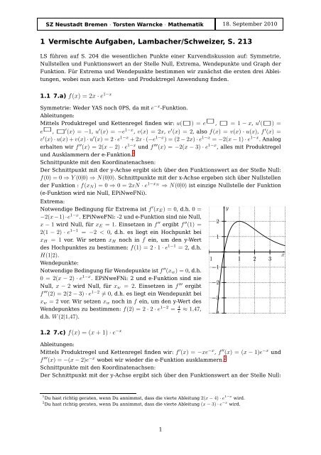 Komplette Kurvendiskussion Nullstellen Ableitungen