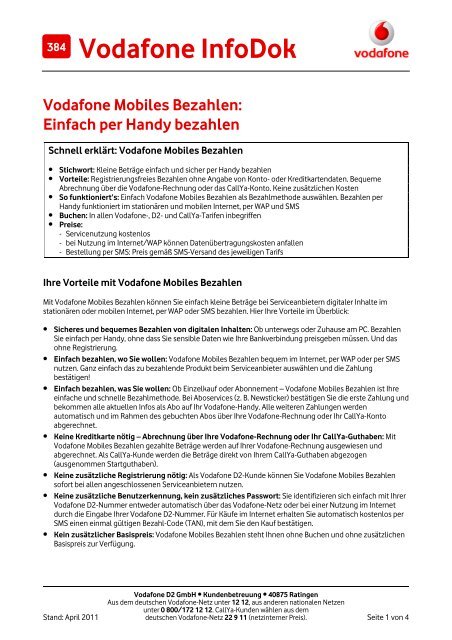Infodok 384 Vodafone Mobiles Bezahlen Einfach Per Handy