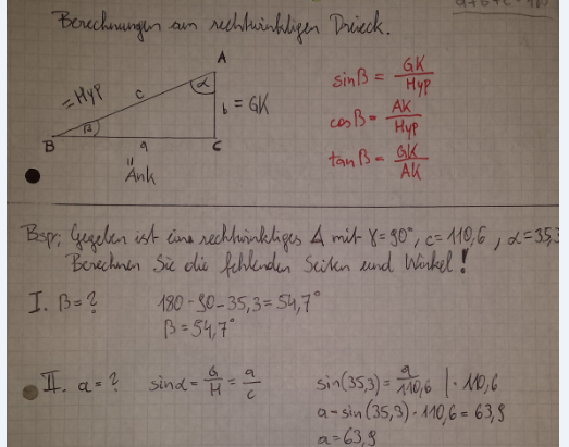 Rechtwinkliges Dreieck Beispiel G 90 C 110 6 A 35 3