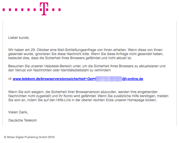 T Online Phishing E Mail Telekom Betriebsgesellschaft Ist Betrug
