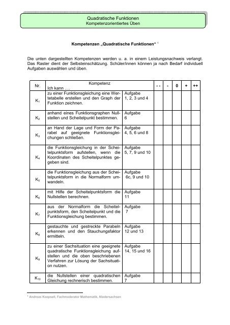 Ubungen Zu Quadratischen Funktionen