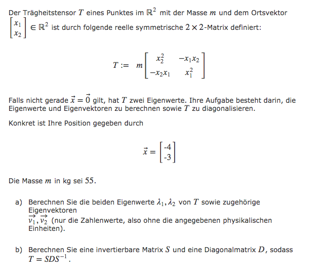 Diagonalisierung Des Tragheitstensors Mathelounge